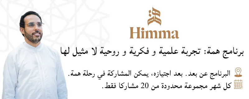 برنامج هِمّة وُجد ليمنح الإنسان فرصة للتوقف قليلاً، وإعادة النظر في الأسئلة الكبرى التي تشكل علاقته بنفسه وبالعالم. إنه ليس برنامجاً تعليمياً تقليدياً، بل مسار فكري وروحي يساعد .الإنسان على إعادة بناء وعيه بطريقة أكثر عمقا واتزانا